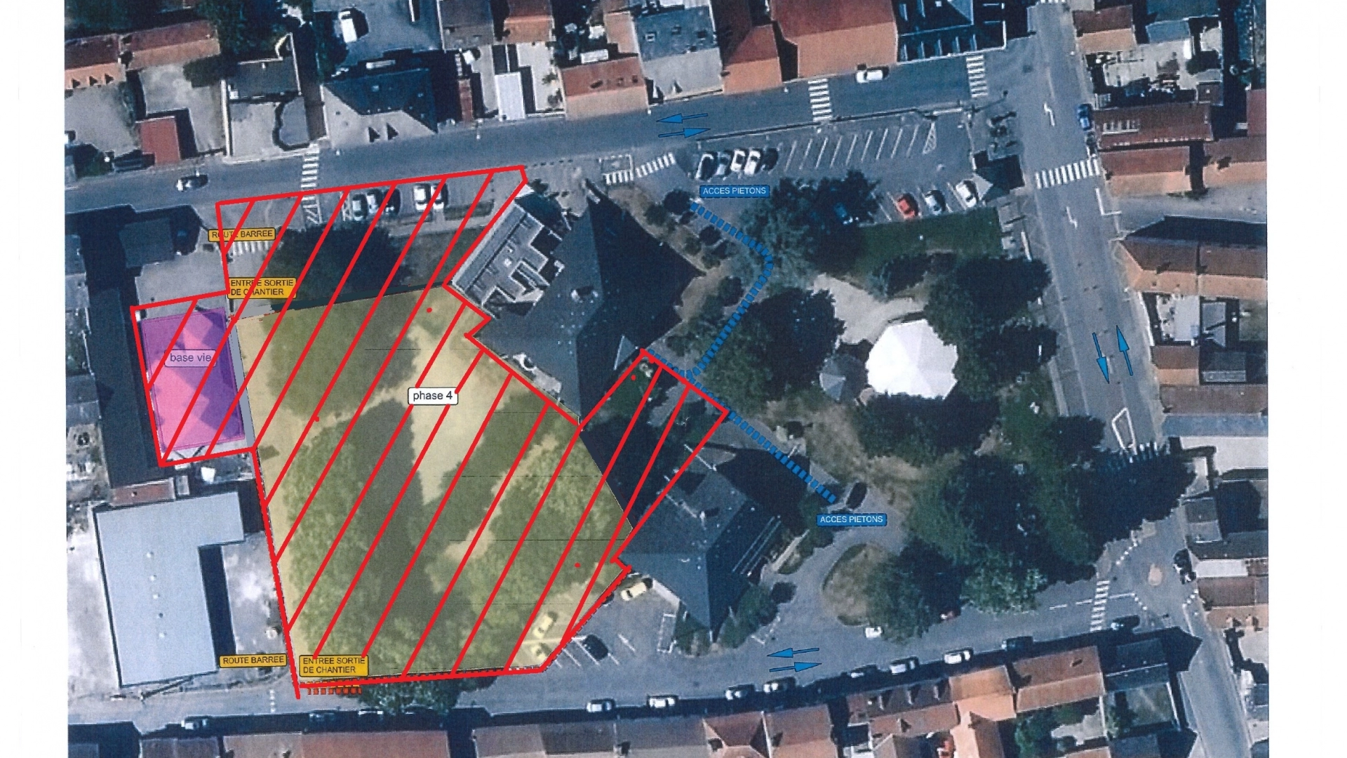 Un cheminement piéton sécurisé sera maintenu afin d’assurer la desserte des riverains et l’accès aux commerces situés dans la zone concernée.