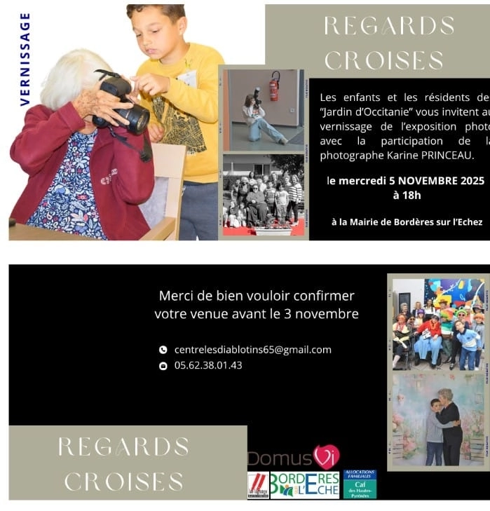 Les enfants du centre de loisirs Léo Lagrange de Bordères sur l’Echez et les résidents de la résidence séniors « les Jardins d’Occitanie » vous invitent au vernissage de l’exposition photo « Regards croisés », avec la participation de la photographe Karine Princeau.