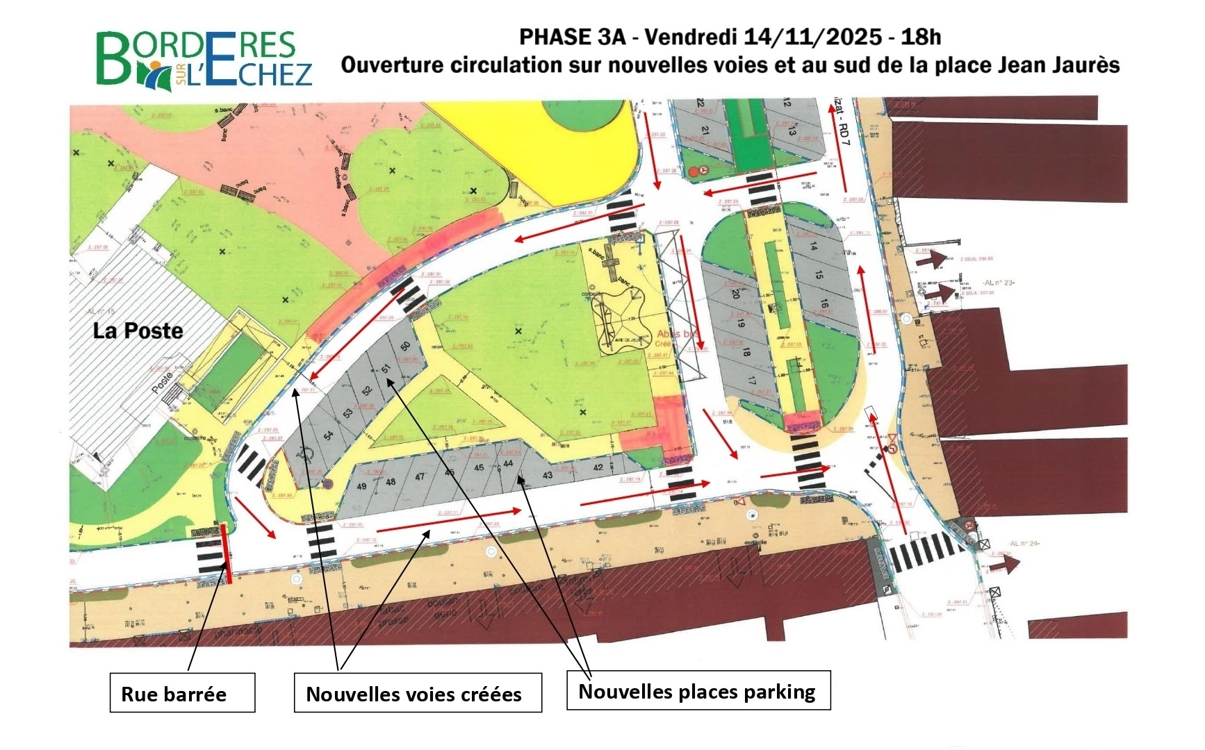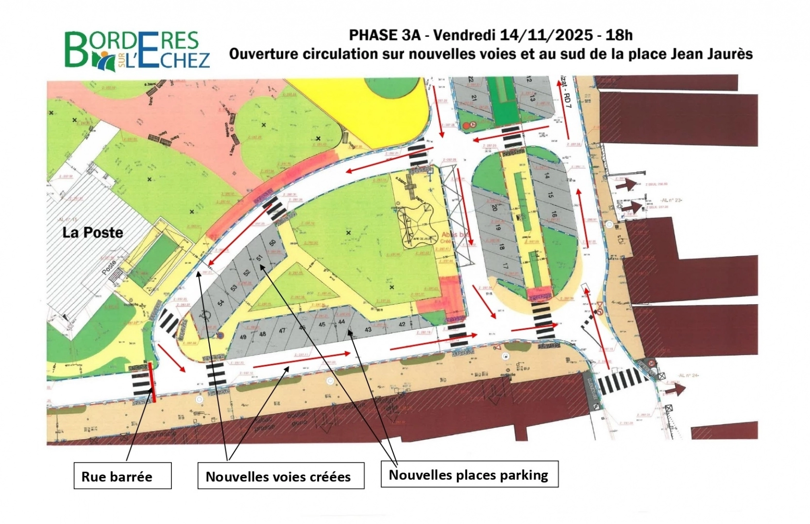 - La circulation sera ouverte sur les nouvelles voies créées et au sud de la place Jean Jaurès.