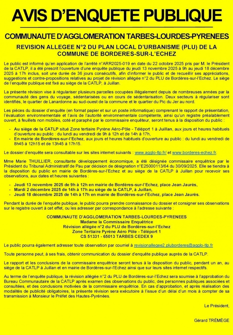 Vous trouverez ci-dessous l'avis d'enquête publique.
