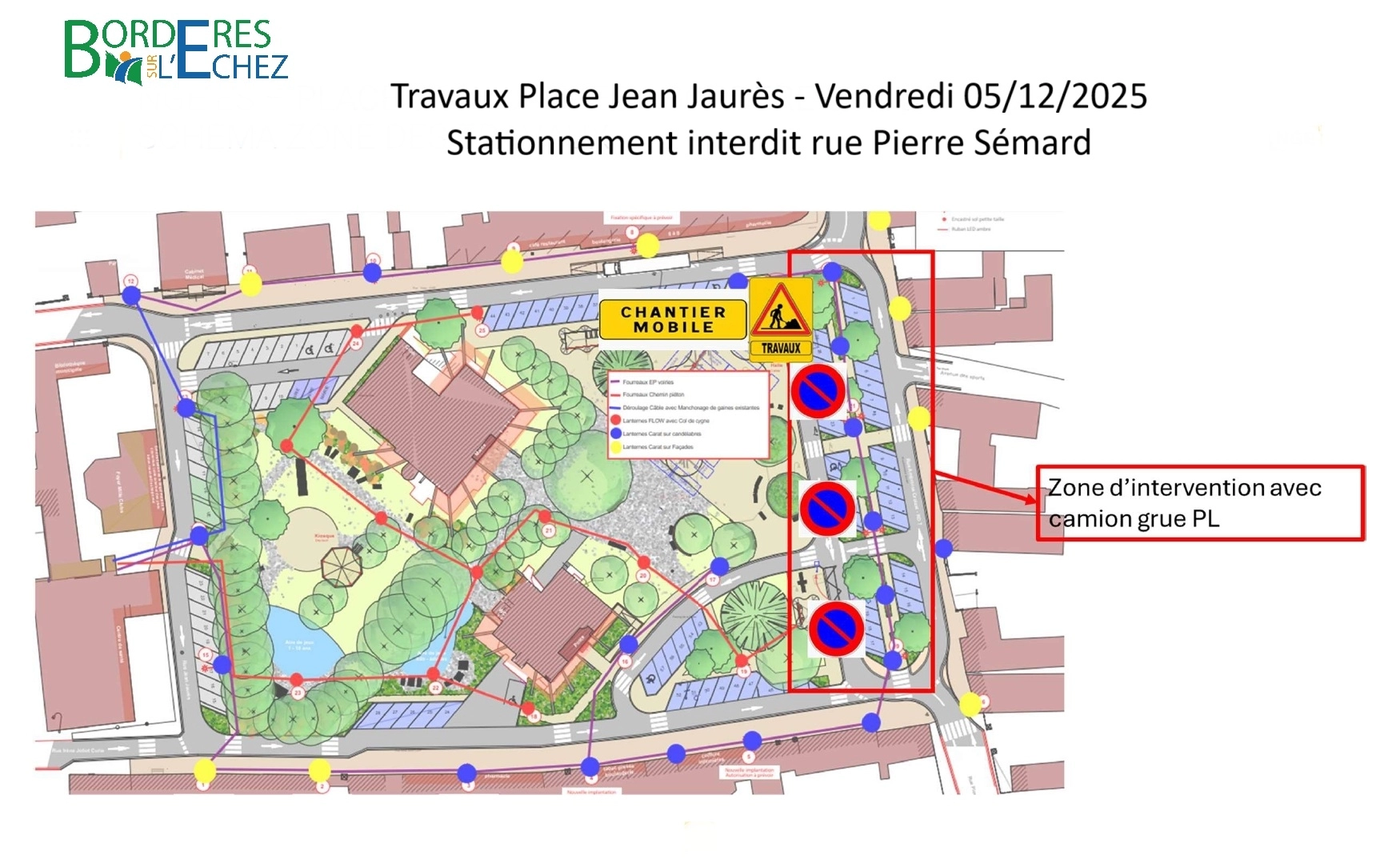 En raison de l'intervention d'un camion-grue pour installer 7 candélabres, de 7m de hauteur chacun , le stationnement sera interdit :